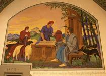Auf der Wand, dem Südfenster gegenüberliegend, können wir seit 1934 ein wandfüllendes Gemälde sehen