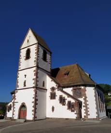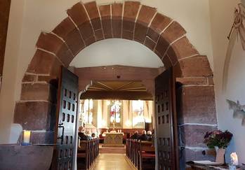 aus der Zeit der Neugestaltung der Kirche und ist kunstvoll bemalt.Tritt der Besucher ein, befindet er sich in der Vorhalle im Turm. Durch eine weitere Türe gelangt er in den Kirchenraum.