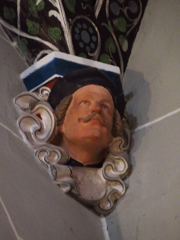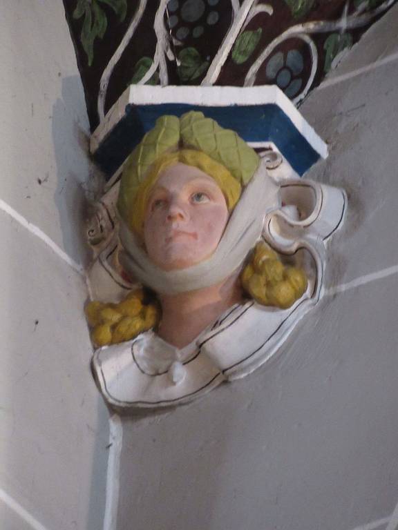 Bei den beiden holzgeschnitzten Köpfe am vorderen Ende des Deckenbogens im Hauptschiff handelt es sich um den Architekten Richard Schneider und seine Frau Johanna Schneider, geborene Asal. Richard Schneider leitete die Renovierung und den Umbau zur Vergrößerung der Germanuskirche und den Einzug der großen Holz-Empore im Jahr 1903-1905.